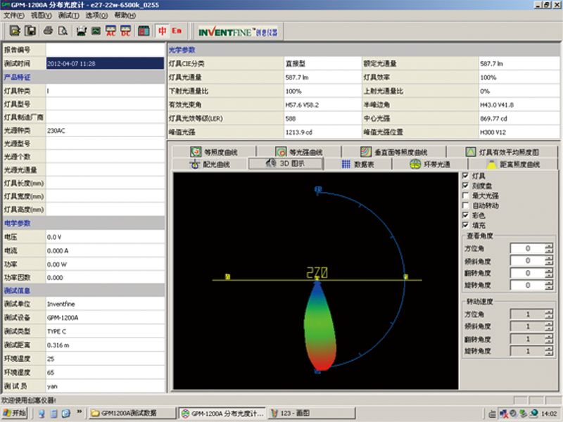 >自動測定光束角:常用的半強度角以及可以滿足特殊要求的1/4光強度角和3/4光強度角和1/10光強度角